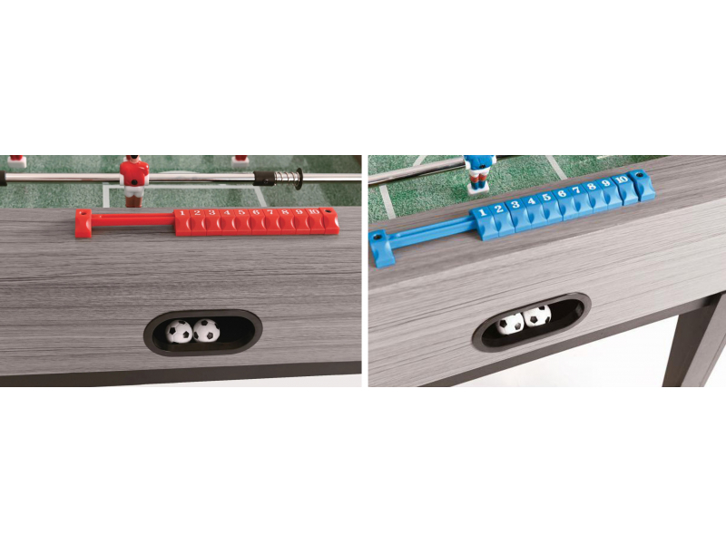 bumba kabatā aiz katra vārtu staba ļauj viegli izgūt bumbu ar integrētu vārtu skaitītāju.