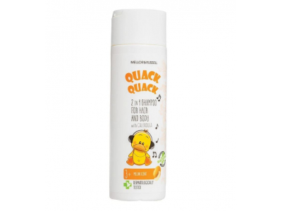 QUACK QUACK Šampūns 2 vienā matiem un ķermenim ar kliņģerīšu ekstraktu. Mīksta bāze attīra matus un piešķir tiem spīdumu. Rezultāts - mati un āda ar patīkamu melones smaržu. Dermatoloģiski pārbaudīts. Kliņģerīte - piemīt pretiekaisuma darbība.