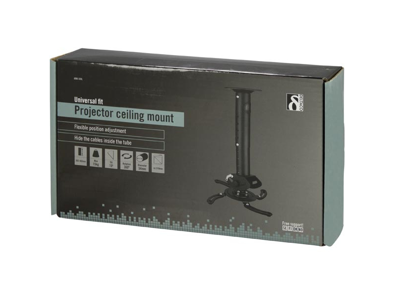 DELTACO griestu stiprinājums projektoram, maks. 15kg , 302-402mm regulējams augstums, melns