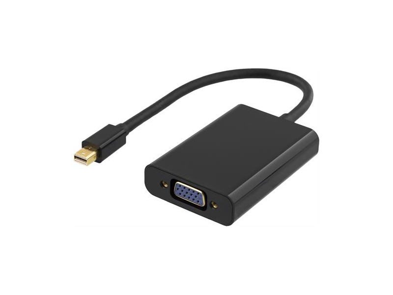 DELTACO mini displejs Ports uz VGA adapteri ar audio, Full HD in 60Hz, melns, 0,25m, 3,5mm, 20-pin ha - 15-pin ho