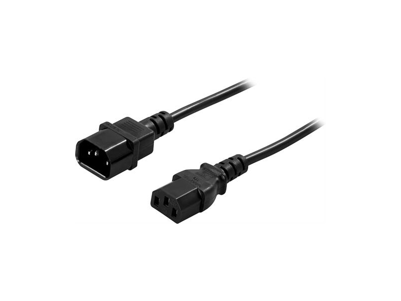 DELTACO iezemēta ierīce / paplašinājuma kabelis savienošanai starp ierīci un elektrotīklu / kabeli, taisni IEC 60320 C14 taisni IEC 60320 C13, max 250V / 10A, 1m black