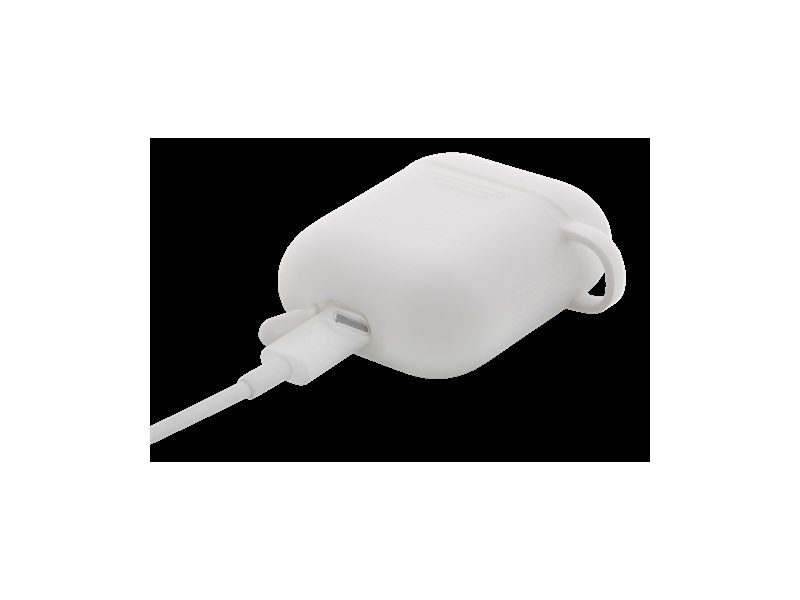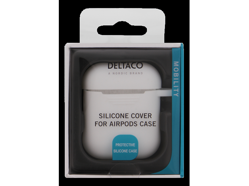 DELTACO AirPods Silikons Korpuss, mīksta, atslēgas ķēdes cilpa, satvērienam draudzīgs, balts.