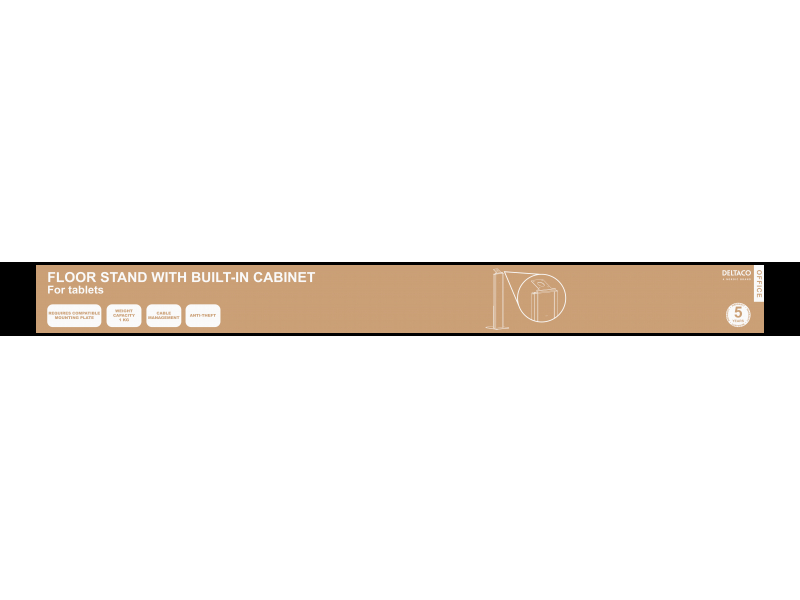 ARM-0513 ir grīdas statīvs DELTACO BIROJS tabletēm, kas izgatavotas no augstas kvalitātes tērauda ilgtermiņa lietošanai. Stends ir ideāli piemērots informācijas vai reklāmas sniegšanai veikalos un sabiedriskās vietās. Tablete ir savienota ar stendu kopā ar ARM-0500 / ARM-0501 vai jebkuru saderīgu montāžas plāksni, un to var pārslēgt starp ainavu vai portreta režīmu, lai apmierinātu dažādas apskates vajadzības. Stilīgais priekšējais panelis piedāvā daudz vietas zīmolvedībai un citiem grafikas darbiem. Stends ir aprīkots arī ar slēdzamu glabāšanas telpu, piemēram, zaru kontaktligzdām, kabeļiem un citiem piederumiem, kā arī kabeļu vadības sistēmu labi organizētiem un aizsargātiem kabeļiem.