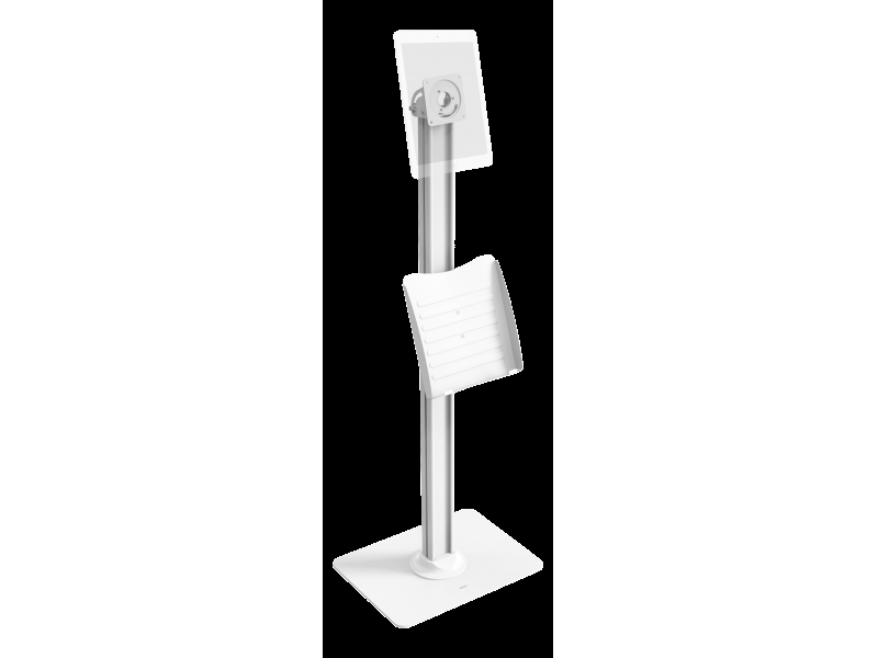 DELTACO BIROJS Grīdas statīvs planšetei ar augsti regulējamu brošūru/katalogu stendu, white