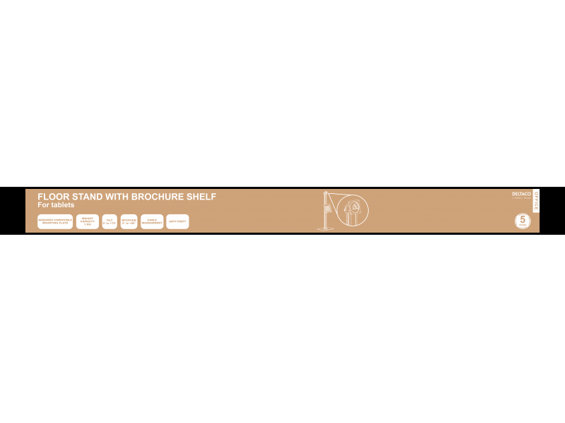 ARM-0512 ir grīdas statīvs ar augstumu regulējamu stendu no DELTACO BIROJI, kas izgatavots no augstas kvalitātes alumīnija ilgtermiņa lietošanai. Stends ir ideāli piemērots informācijas nodošanai veikalos un sabiedriskās vietās, pagriežot 0 ° ~ + 90 ° starp ainavu vai portreta režīmu un sasverot 0 ° ~ + 75 ° par labāko iespējamo skatu leņķi. Tablete ir savienota ar statīvu kopā ar ARM-0500 / ARM-0501. Stends ir aprīkots arī ar kabeļu vadības sistēmu labi organizētiem un aizsargātiem kabeļiem.