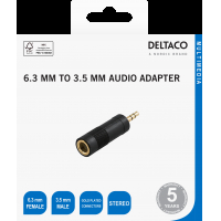DELTACO austiņu adapteris 6,3mm sieviešu kārtas - 3,5mm vīriešu kārtas, melns