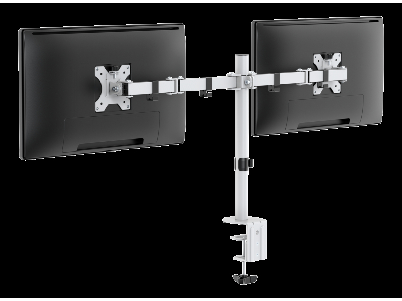 DELTACO GAMING WA86 Divu monitoru galda stiprinājums, 13"-32" ekrāni, VESA 75x75/100x100, balts