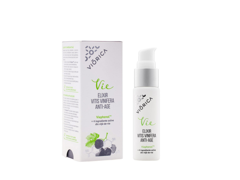 Antioksidantu komplekss Viephenol™ stimulē kolagēna izstrādi, šūnu atjaunošanos un palēnina ādas fotonovecošanos. Resveratrols stimulē kolagēna un elastīna izstrādi, mazinot grumbas. Vīnskābe padara ādu gludāku un mirdzošāku. Vīnogu lapu ekstrakts uztur ūdens līdzsvaru ādā, bet vīnogu kauliņu eļļa padara ādu elastīgāku, koriģējot sejas ovālu.