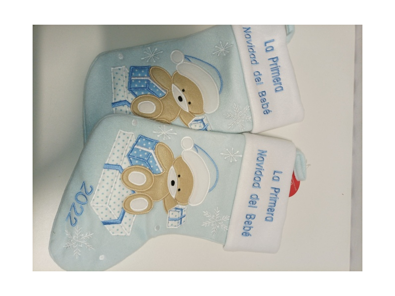 Ecost Heart's Sign Babys First Christmas Stockings Blue - Spanish