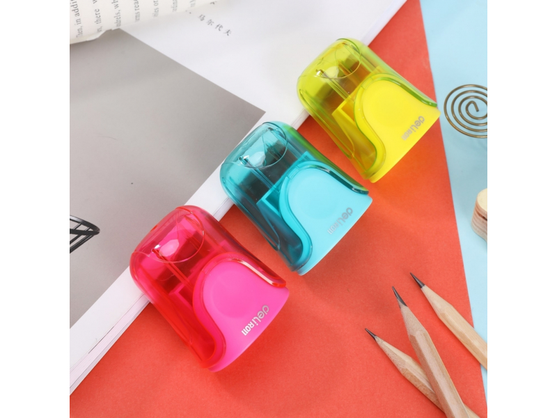 Deli ER01100 asinātājam ir divas atveres, kas padara to par universālu risinājumu gan standarta (φ8 mm), gan lielāku džambo zīmuļu (φ12 mm) asināšanai. Īpaši ass asmenis un precīza asmens pozicionēšana garantē tīru un precīzu asināšanu bez serdes lūzumiem. Caurspīdīgais skaidu konteiners ļauj viegli uzraudzīt tā piepildījumu un ērti iztīrīt asināmo, palīdzot uzturēt kārtību darba vietā.