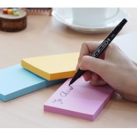 Vienkārši nolobiet vienu pašlīmējošo lapiņu no bloka. Cieši piespiediet lipīgo pusi pie jebkuras tīras, sausas virsmas. Uzrakstiet savu ziņu vai atgādinājumu ar pildspalvu vai zīmuli un noņemiet lapiņu, kad esat pabeidzis.