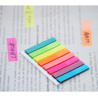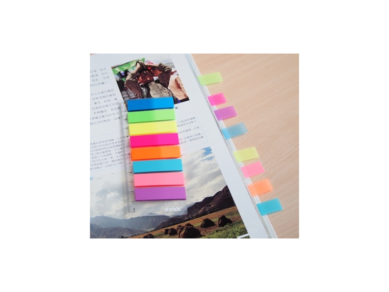 Katra atzīme ir izgatavota no izturīgas plastmasas, nodrošinot ilgmūžību un atkārtotu lietošanu. Ērtais izmērs 45 x 12 mm padara tās ideāli piemērotas lapu indeksēšanai, sadaļu marķēšanai vai galvenā teksta izcelšanai, vienlaikus nodrošinot vieglu uzlīmēšanu un noņemšanu, nesabojājot lapas. Iegūstiet lielisku cenas un kvalitātes attiecību ar šo izdevīgo komplektu jūsu dokumentu organizēšanai.