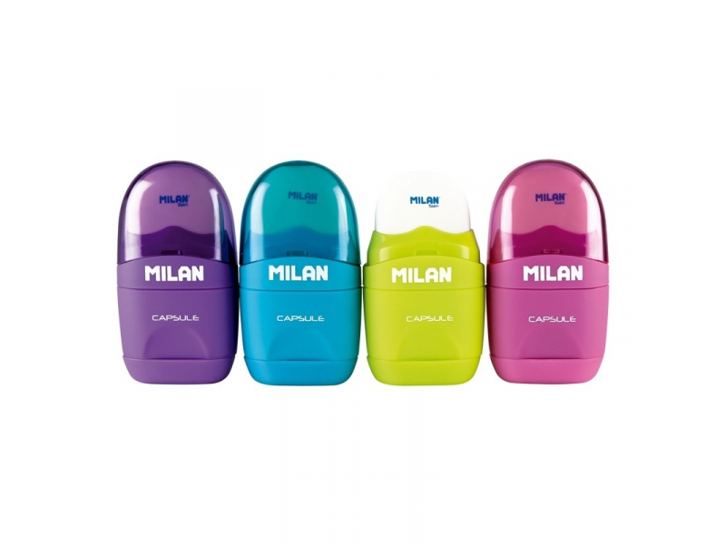 Pieejams plašā košās krāsu gammā, Milan Capsule asināmais ir ne tikai funkcionāls, bet arī stilīgs. Tā kompaktais izmērs ir ideāli piemērots skolas somām, penāļiem un ceļojumiem, nodrošinot vienmēr asu zīmuli un iespēju labot kļūdas jebkurā brīdī.