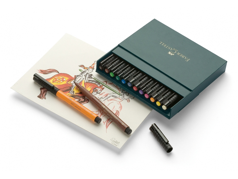 Faber-Castell Pitt Artist Pen otiņas pildspalvu komplekts ar 12 gabaliem apvieno tradicionālo Indijas tintes mākslu ar mūsdienīgu ērtību. Šīs augstas kvalitātes otiņas pildspalvas ir jaudīgs rīks māksliniekiem un grafiskajiem dizaineriem, kas vēlas atraisīt savu radošo redzējumu, piedāvājot bagātīgu tintes zīmēšanas tradīciju ar elastīga otiņas gala daudzpusību.