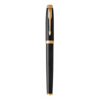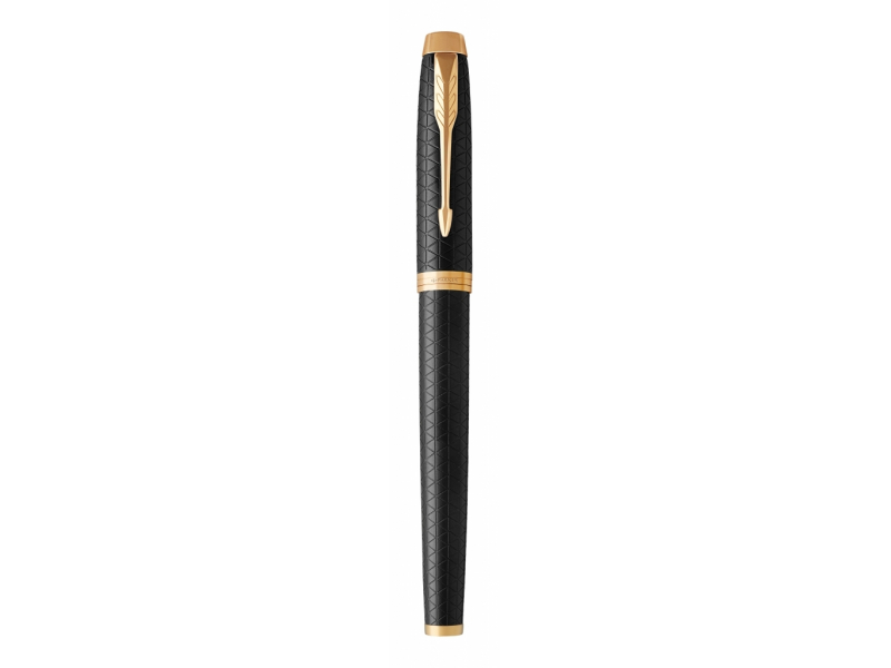 Parker IM Premium pildspalvai ir gluds, sašaurināts siluets, kas piedāvā gan estētisku pievilcību, gan ērtu satvērienu. Tās izturīgais smilšstrūklas melnā anodētā alumīnija korpuss un vāciņš ir sarežģīti iegravēti ar mūsdienīgu rakstu, ko papildina smalki zeltaini akcenti un ikoniskais Parker bultas klipsis. Šis pārdomātais dizains nodrošina ne tikai greznu izskatu, bet arī ilgstošu izturību un izsmalcinātu taustes pieredzi.
