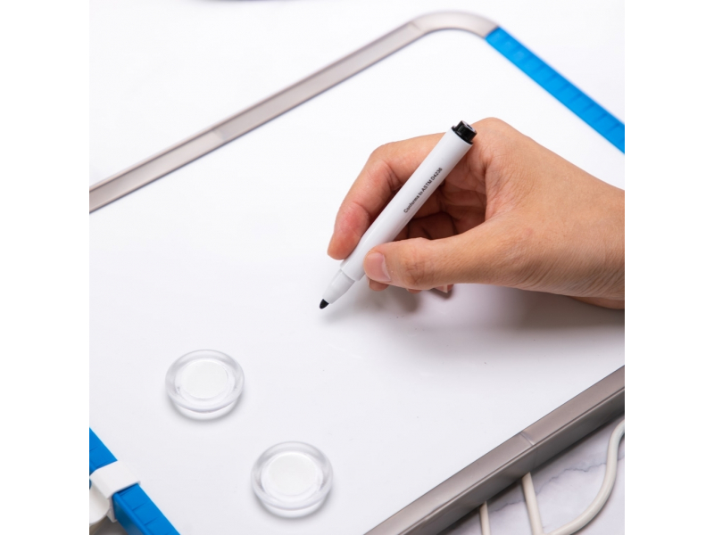 Ar gludu, baltu magnētisko virsmu un izturīgu plastmasas rāmi, DELI Mini tāfele ir radīta gan stilam, gan ilgmūžībai. Tās magnētiskā virsma ļauj ne tikai viegli rakstīt un dzēst ar sausās dzēšanas marķieriem, bet arī droši piestiprināt svarīgus dokumentus vai atgādinājumus, izmantojot magnētus, nodrošinot kārtību un ērtību.
