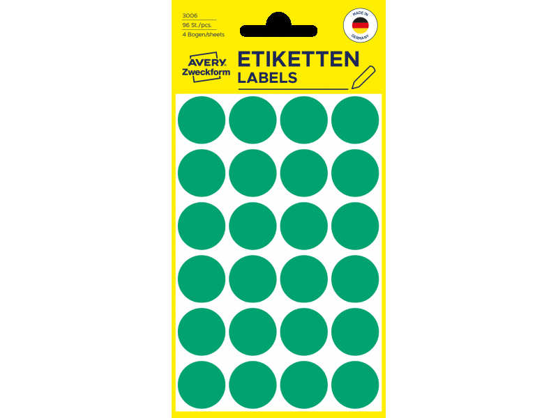 Nodrošiniet nevainojamu kārtību un skaidru vizuālo identifikāciju, izmantojot augstas kvalitātes Avery Zweckform 3006 pašlīmējošos punktus. Šīs daudzpusīgās, spilgti zaļās krāsas apaļās uzlīmes ir neaizstājams palīgs efektīvai organizēšanai un marķēšanai jebkurā vidē – sākot no mājām līdz pat rosīgam birojam vai skolas klasei. Ar to palīdzību jūs viegli uzturēsiet kārtību un ātri atradīsiet nepieciešamo, ietaupot laiku un pūles.