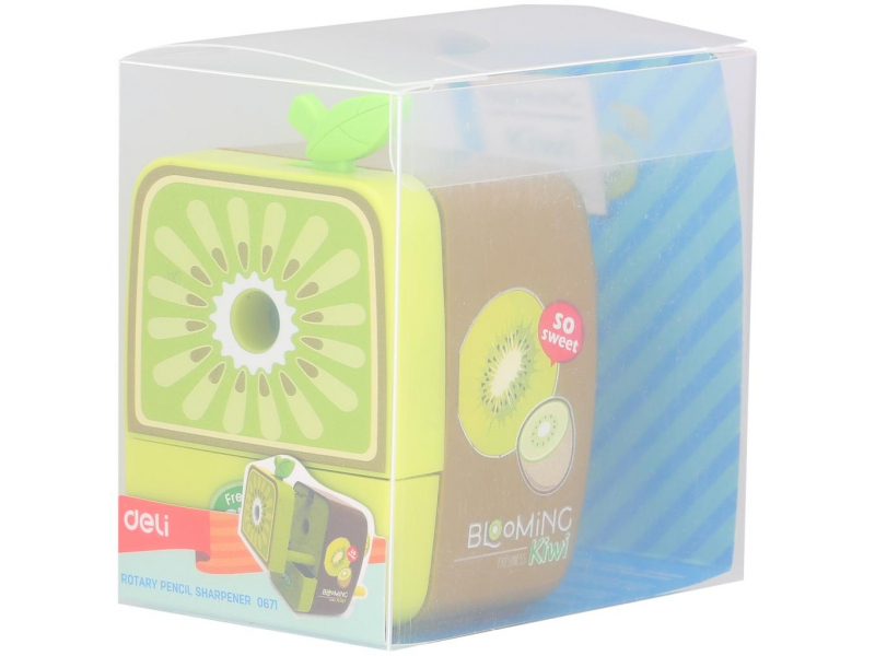Pievienojiet priecīgu pieskārienu bērna skolas piederumu kolekcijai ar Deli E0671 mehānisko zīmuļu asināmo ar augļu dizainu! Šis burvīgais un praktiskais zīmuļu asināmais ir ideāli piemērots jaunajiem māksliniekiem un skolēniem, kuriem patīk zīmēt un krāsot. Ar apburošiem augļu motīviem, piemēram, zemenes, kivi vai citrona attēlu, tas ienesīs dzīvespriecīgu krāsu uz jebkura galda vai skolas somā, veicinot radošumu un padarot zīmuļu asināšanu par jautru nodarbi.