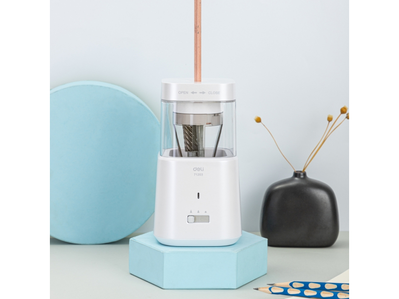 Iepazīstieties ar DELI 71203 elektrisko zīmuļu asināmo – neaizstājamu palīgu māksliniekiem, studentiem, skolēniem un ikvienam, kurš novērtē ideālu asumu un laika ietaupījumu. Šis automātiskais asināmais ir īpaši izstrādāts grafīta zīmuļiem ar diametru no 6,9 līdz 8 mm, nodrošinot nevainojami asu un gludu galu katru reizi.