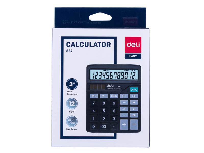 Deli E837 galda kalkulators ir jūsu neaizstājams palīgs precīziem un efektīviem aprēķiniem mājās, birojā vai mācību procesā. Šis uzticamais 12 ciparu kalkulators ir aprīkots ar lielu un skaidru LCD displeju, nodrošinot, ka visi skaitļi ir viegli nolasāmi no pirmā acu uzmetiena.