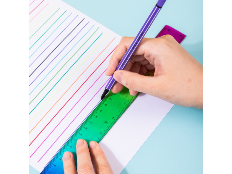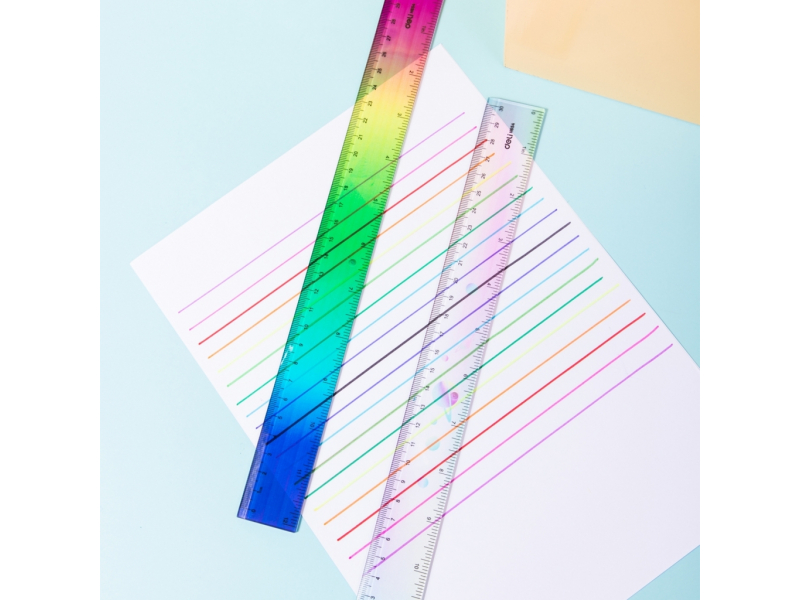 Uzlabojiet savu zīmēšanas un mērīšanas pieredzi ar Deli 30 cm krāsaino gradienta lineālu. Šis spilgtais un praktiskais mērīšanas rīks ir ideāli piemērots studentiem, māksliniekiem un profesionāļiem, kuri meklē precizitāti un personisku pieskārienu savā darba telpā. Nodrošinot precīzu zīmēšanu, rasēšanu un ikdienas mērījumus, tas ir būtisks papildinājums jebkurai penālei vai galdam.