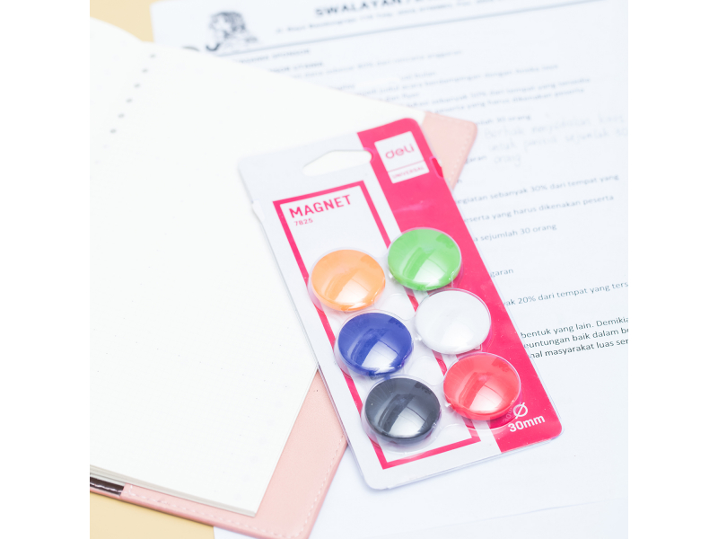 DELI E7825 magnētiskās pogas ir ideāls risinājums jūsu telpas stilīgai un praktiskai organizēšanai. Šis 6 spilgtu pogu komplekts ar 30 mm diametru un spēcīgu magnētisko fiksāciju kļūs par neaizvietojamu palīgu mājās, birojā vai klasē. Tās ļauj viegli un droši piestiprināt piezīmes, fotogrāfijas, zīmējumus un citus svarīgus materiālus uz jebkuras metāla virsmas, piešķirot interjeram spilgtus akcentus.