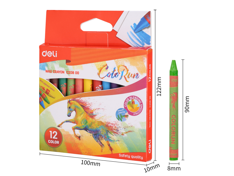 DELI Colorun vaska krītiņi ir izstrādāti izcilai veiktspējai, tie bez piepūles slīd pa papīru, nodrošinot bagātīgu un vienmērīgu pigmentāciju. Ērts diametrs φ8 mm un garums 90 mm nodrošina drošu satvērienu, ļaujot strādāt ilgstošas radošās sesijas bez diskomforta. Neatkarīgi no tā, vai strādājat pie vienkāršām krāsojamām lapām vai sarežģītiem zīmējumiem, sagaidiet satriecošus, koši krāsainus un acīm piesaistošus rezultātus katru reizi.