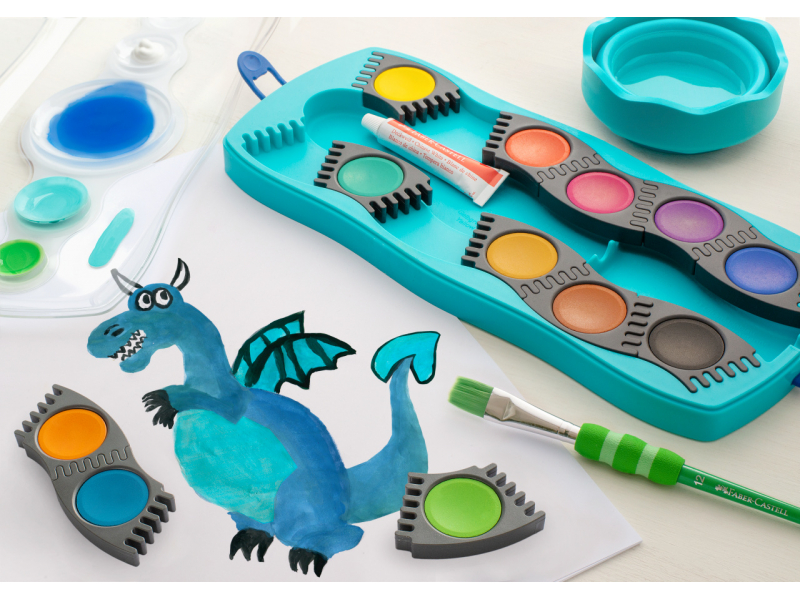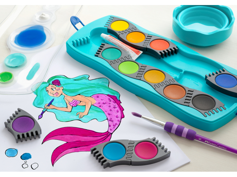 Šo kompakto un ērti lietojamo komplektu iesaka skolotāji, un tas ir izstrādāts atbilstoši mūsdienu mācību standartiem. Iebūvētā jaukšanas palete vākā, otiņu nodalījums un vārda lauks nodrošina maksimālu komfortu un kārtību radošā procesā. Atsevišķās krāsas var iegādāties arī atsevišķi, nodrošinot ilgstošu un daudzveidīgu lietošanu.