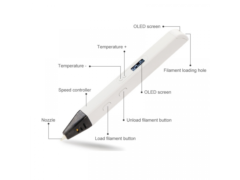 Riff RP800A Pro ir īpaši ērta sformas 3D Drukas ideju pildspalva kas ir pielietojama ne tikai bērniem, bet to var izmantot arī pieaugušie, lai pielietotu praktiskiem mērķiem - dizaina un ctu māksliniecisku uzdevumu risināšanai  - Būs arī  lieliska rotaļlieta bērniem, pieaugušajiem - un vienreizējs darba instruments jebkuram mazajam  māksliniekam. Vienīgais kas limitē šīs 3D pildspalvas iespējas - ir Jūsu iztēle! Riff RP800A Pro modelis nodrošina precizāku izpildi, un pateicoties tā vieglajam svaram ar to ir ērti strādāt ilgāk. Šī 3D pildspalva darbojas no strāvas vada bloka, kas pieslēdzams rozetē. Komplektā ir drukas pildelements sākuma testam, ieteicams iegādāties atsevišķ;i savietojamus drukas diegus - ABS/PLA. Plašāku informāciju un lietošanas pamācību par šo ierīci - droši meklējat YouTube video kanālos!