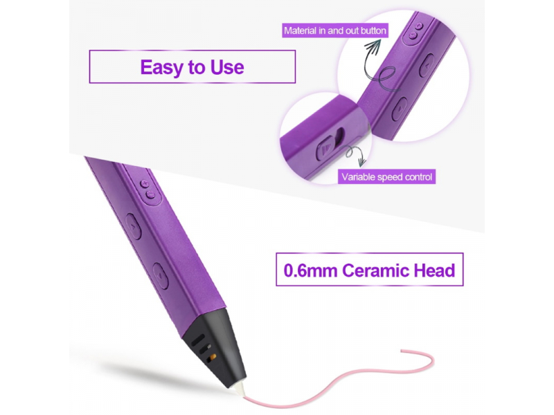 Riff RP800A Pro ir īpaši ērta sformas 3D Drukas ideju pildspalva kas ir pielietojama ne tikai bērniem, bet to var izmantot arī pieaugušie, lai pielietotu praktiskiem mērķiem - dizaina un ctu māksliniecisku uzdevumu risināšanai  - Būs arī  lieliska rotaļlieta bērniem, pieaugušajiem - un vienreizējs darba instruments jebkuram mazajam  māksliniekam. Vienīgais kas limitē šīs 3D pildspalvas iespējas - ir Jūsu iztēle! Riff RP800A Pro modelis nodrošina precizāku izpildi, un pateicoties tā vieglajam svaram ar to ir ērti strādāt ilgāk. Šī 3D pildspalva darbojas no strāvas vada bloka, kas pieslēdzams rozetē. Komplektā ir drukas pildelements sākuma testam, ieteicams iegādāties atsevišķ;i savietojamus drukas diegus - ABS/PLA. Plašāku informāciju un lietošanas pamācību par šo ierīci - droši meklējat YouTube video kanālos!