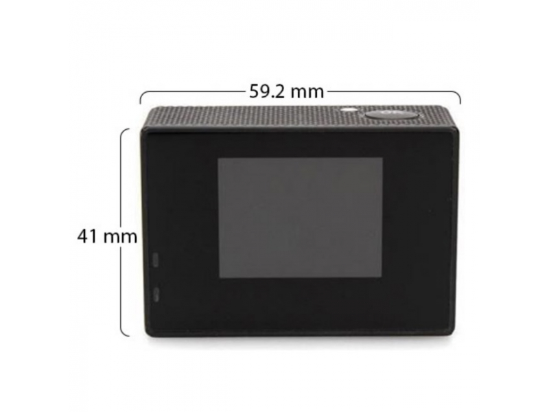 Tehniskā specifikācija:LIQUID CRYSTAL DISPLAY (LCD)1.5LTPSLENS170°A+ HD wide-angle lens, 6G lensLANGUAGE OPTIONSEnglish / German / French / Spanish / Italian / Portuguese / Chinese Traditional / Chinese Simplified / Japanese / RussianRESOLUTION OF VIDEOS RECORDED1080P (1920*1080 ) 30FPS 720P (1280*720) 60FPS (double frame, not true 60fps) VGA ( 848*480) 60FPS QVGA (640*480) 60FPSVIDEO FORMATMOVCOMPRESSED FORMAT OF VIDEOSH.264RESOLUTION OF PHOTOS12M / 8M / 5MSTORAGEMicro SDSHOOTING MODESingle Shot / Self-timer (2s / 5s / 10s / Continuous ShootingFREQUENCY OF OPTICAL SOURCE50Hz / 60HzUSB INTERFACEUSB2.0POWER SOURCE INTERFACE5V1ABATTERY CAPACITY900MAHPOWER DISSIPATION[email protected]RECORDING TIME1080P/ About 70 minutesCHARGING TIMEAbout 3.5 hoursOPERATING SYSTEM (OS)Windows XP/VistaorAbove/Win7/Mac osDIMENSION59.27*41.13*29.28Komplektācija: