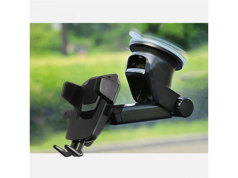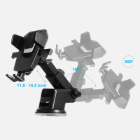 Universāls automašīnas telefona turētājs ar garu, teleskopisku kāju, kas stiepjas no 11,8 līdz 16,5 cm.