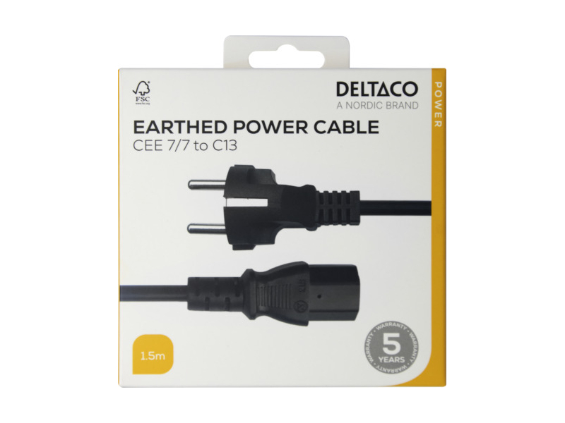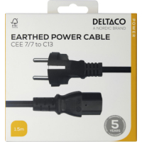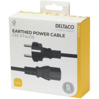 STRĀVAS VADS DELTAKO CEE 7/7 - C13, 1,5M, MELNS / 1902303