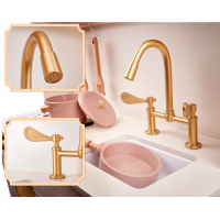 Retro stila virtuve patiks lauku stila interjera dizaina entuziastiem, kā arī Boho vai Scandi estētikas cienītājiem. Vienkāršā forma un klusinātas krāsas – baltā, zelta un pūderrozā kombinācija – padara to elegantu un izskatīsies skaisti jebkurā interjerā.