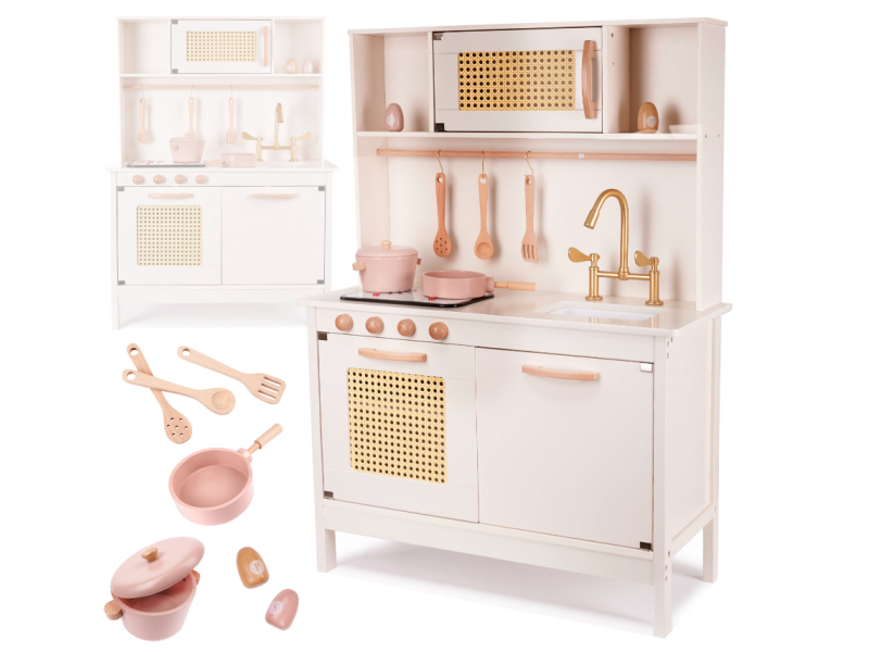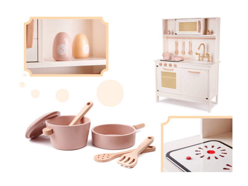 Koka virtuve ir daudzu mazu bērnu sapņa piepildījums. Izgatavota ar lielu rūpību, tā sajūsmina ar detaļām un praktiskumu!