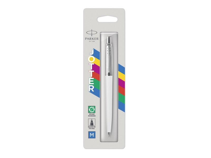 Atklājiet ikonisko Parker Jotter Originals lodīšu pildspalvu klasiski baltā krāsā – tas ir harmonisks mūžīga dizaina un mūsdienīgas ilgtspējības apvienojums. Šis klasiskais rakstāminstruments lepojas ar gludu, skrāpējumiem izturīgu glancēta plastmasas korpusu, kas izgatavots no 55% pārstrādātu materiālu (izņemot uzpildi), padarot to par videi draudzīgu izvēli.