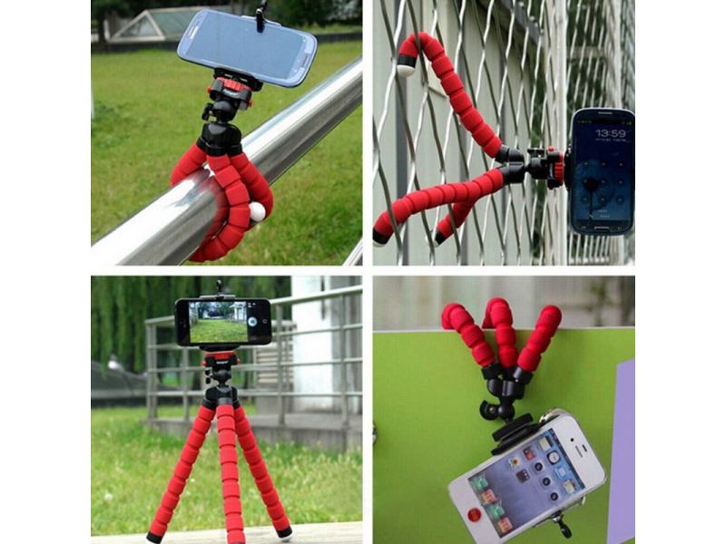 Riff TRIP Universāls Elastīgs un mīksts Triskāju Statīvs - turētājs mobilajiem telefoniem / kamerām (maks. 18 cm) Sarkans