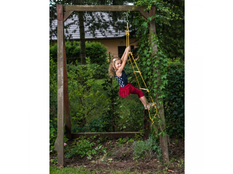 Woody 90124 - Eko koka virves kāpnes, kurus var piestiprinat un izmantot gan ārā, gan mājās. Pilnīgi drošas kāpnes, izmantot var bērni pat no 3 gadiem. Viegli piestiprināms pie jebkuras nostiprinātas laivas klāja vai sporta zāles, kompakta uzglabāšana. Var izmantot kā papildinājumu jūsu āra trenažieru zālē un vingrošanas zonā. Izmantot var gan meitenes, gan puiši, kā arī pieaugušie.