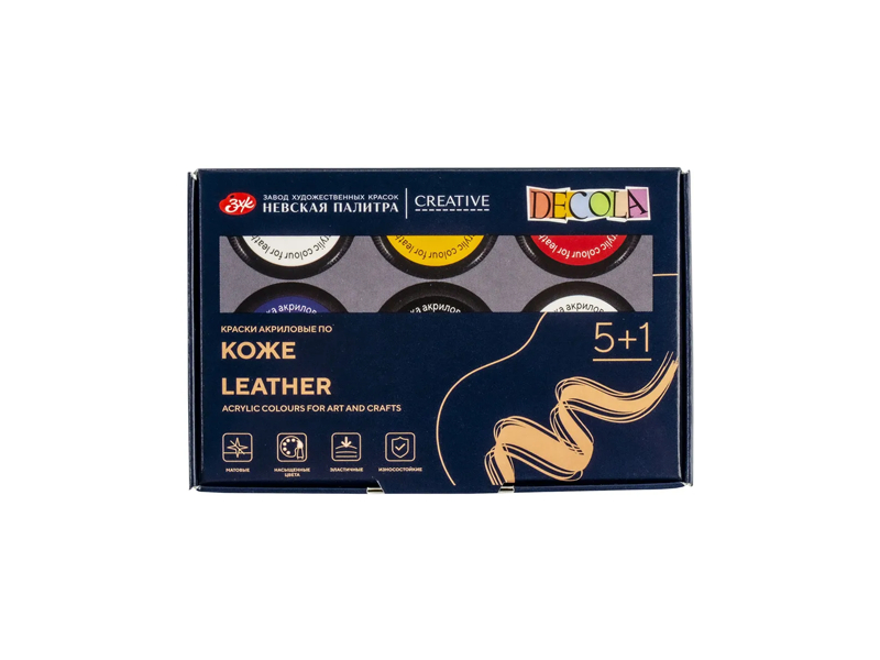 Akrila krāsas ādai DECOLA, 5 krāsas + 1 laka