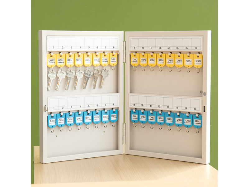 Pateicoties modernai 32 bitu atslēgas cauruma drošībai, DELI atslēgu skapis nodrošina ievērojamu aizsardzības līmeni pret neatļautu piekļuvi, sargājot jūsu vērtības. Skapis ir paredzēts līdz pat 32 atslēgu uzglabāšanai, palīdzot uzturēt perfektu kārtību un nodrošināt, ka jūsu atslēgas vienmēr ir drošībā un sakārtotas.