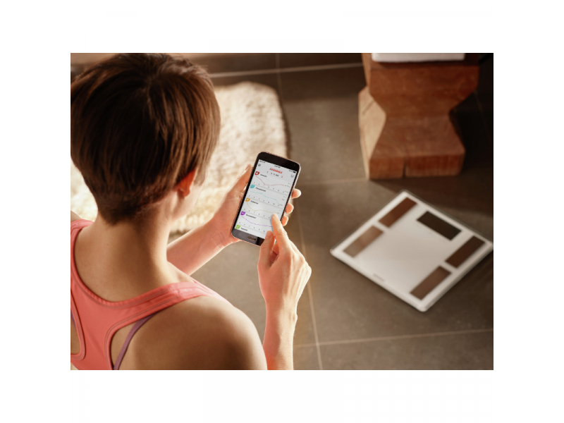 Ķermeņa analīzes Svari ar Bluetooth®. Savenojami ar Soehnle Connect lietni ērtākai datu novērtēšanai, izmantojot vientulruni. Papildus lietu vietas funkcijas: Parādes atkļūdošana ar pedējo svēršānos, ar velamo svāru un atšķīrībā ar statīvu ģermeņa masas indieksu.