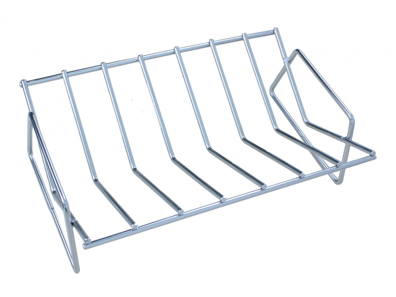 Nerūsējošā tērauda ribu turētājs garšalab ērtai uzglabāšanai lielāku ribu grillā. piemērots 55cm, 60cm grili. izmēri : 41,5 x 18,5 x 12,1 cm svars : 0,54 kg