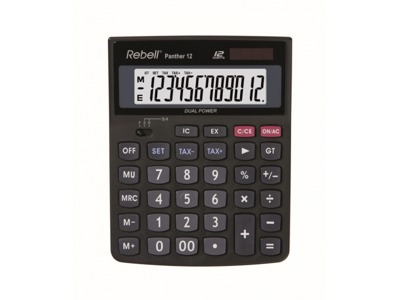 Kalkulators desktop dumpel pantera 12 12 ciparu/ 1 līnijas fiksēts leņķveida displejs procentuālā atslēga valūtas konvertēšana 3 atslēgas atmiņa nodokļu funkcija [tax+; tax-] liela kopsumma dubultnulle [0] mark up price [mu] noapaļošanas aprēķini pareiza funkcija cietais plastmasas taustiņš ar bateriju un saules enerģiju nav teksta atmiņas līdzīgi pilsonim cdc112 krāsa : melna Izmēri : 147x115x32 mm svars : 126 g ražotājs : dumpel http: // www.rebell4you.com/en/search/find/panther+12
