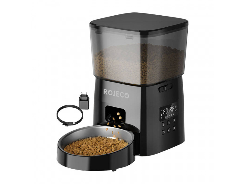Rojeco viedā pārtikas dozators piedāvā ietilpību līdz 2 litriem, tāpēc tas spēj nodrošināt barību kaķiem vai maziem suņiem 10 dienas. Tātad jūs varat doties atvaļinājumā bez bažām, zinot, ka jūsu mīļotais dzīvnieks ir arī labi paēdis jūsu prombūtnē.