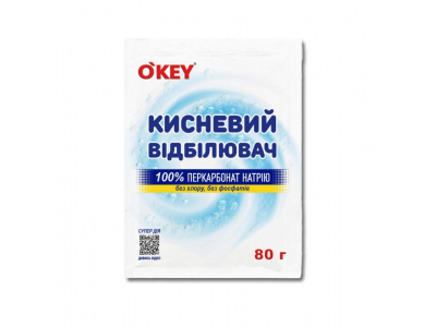100% nātrija perkarbonāts. OKEY Oxygen Bleach ir daudzfunkcionāls produkts, kas izceļas ar savu drošību un augstu efektivitāti. Skābekļa balinātājs darbojas pat aukstā ūdenī, bet uzrāda vēl labākus rezultātus augstākā temperatūrā. Kvalitatīvu mazgāšanu nodrošina skābekļa balinātāja aktīva mijiedarbība ar auduma šķiedrām, tās nesabojā audumu un noņem pat vecos netīrumus. Tas labi darbojas arī ar noturīgiem tējas, kafijas, vīna, tauku, ogu un kosmētikas traipiem. Produkts efektīvi noņem pelēcīgu un dzeltenīgu nokrāsu no baltiem audumiem, nekaitē krāsainiem audumiem un atjauno to spilgtumu.