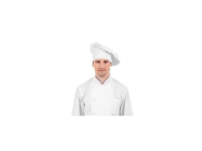 Pavāru cepure ar slēgtu augšu.Izmērs regulējams ar līplenti. Sastāvs: 35% kokvilna, 65% poliestersBlīvums: 165 g/m² Krāsa: balta Ražotājs: Floriana (Latvija)