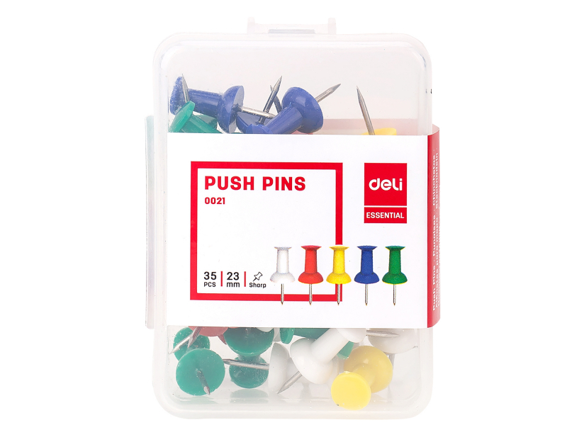 DELI piespraudes ir izgatavotas no izturīgas, augstas kvalitātes plastmasas, kas nodrošina ilgu kalpošanas laiku un noturību pret nodilumu. Komplektā ietilpst 35 piespraudes, kas pieejamas dažādos izmēros, tostarp 10 mm un 23 mm, ļaujot izvēlēties optimālu variantu jebkuriem priekšmetiem, neatkarīgi no to biezuma un svara. Pateicoties asajam galam un uzticamai konstrukcijai, šīs plastmasas piespraudes nodrošina stabilu stiprinājumu, novēršot priekšmetu izkrišanu. Plašā spilgto krāsu izvēle piešķirs individualitāti un stilu, pārvēršot parastu ziņojumu dēli par stilīgu dekoru elementu un ērtu rīku organizēšanai.