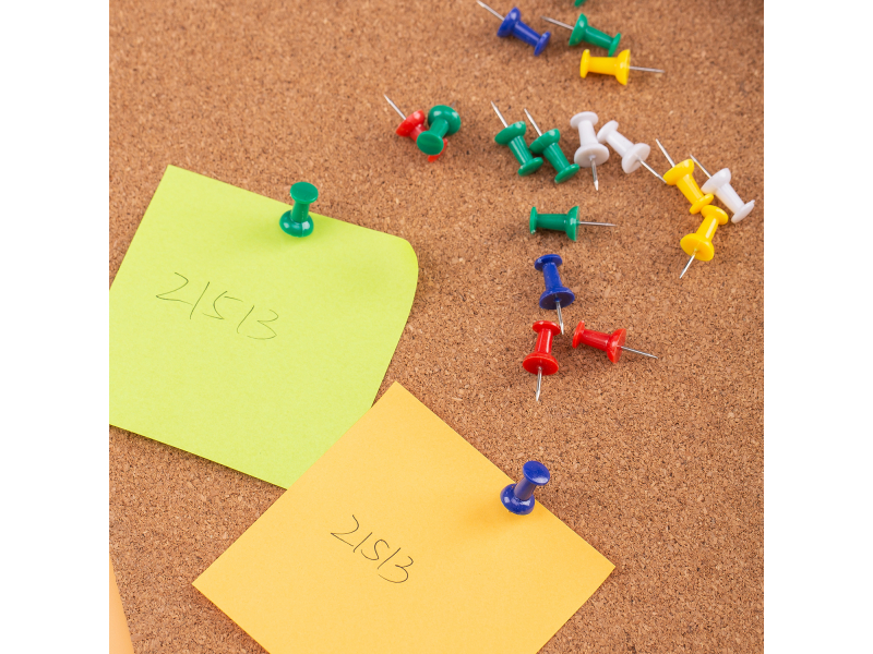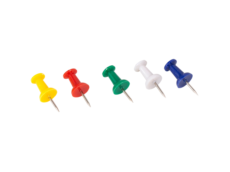 Izvēlieties piemērota izmēra piespraudi atkarībā no priekšmeta biezuma. Ievietojiet piespraudi ziņojumu dēlī, korķa dēlī vai auduma sienā, droši nostiprinot vēlamo priekšmetu. Lai noņemtu, uzmanīgi izvelciet piespraudi.