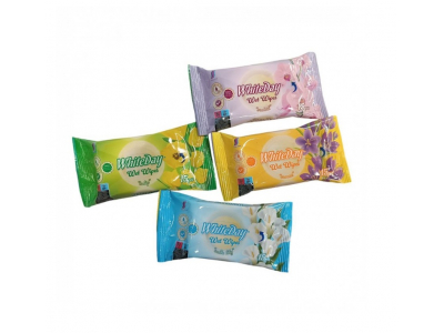 WHITE DAY Mitrās salvetes Flower Mix, 4 veidi, 15 gab.