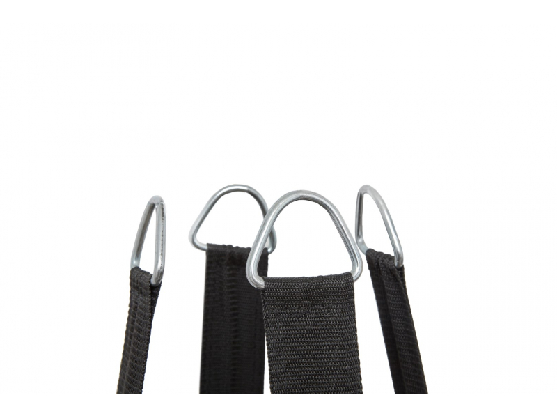 drošas austas siksnas ar tērauda cilpu stiprinājumiem.